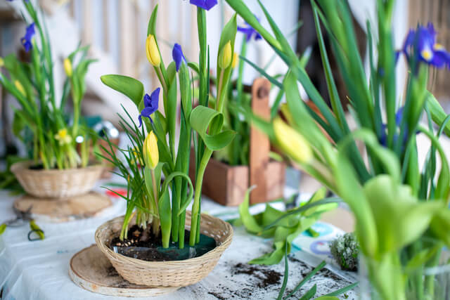 Seasonal bloomers like amaryllis, tulip, and hyacinth that grow from bulbs.