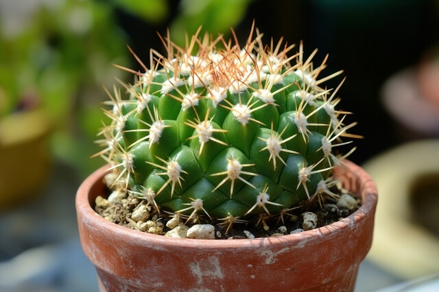 Desert plants like barrel cactus and prickly pear. Thrive on neglect and sunlight.