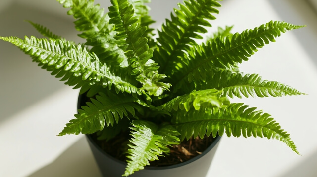 Soft, leafy plants like Boston fern and maidenhair. Love moisture and shade.