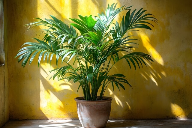 Tropical-feel plants like parlor palm and areca palm. Adds height and drama.